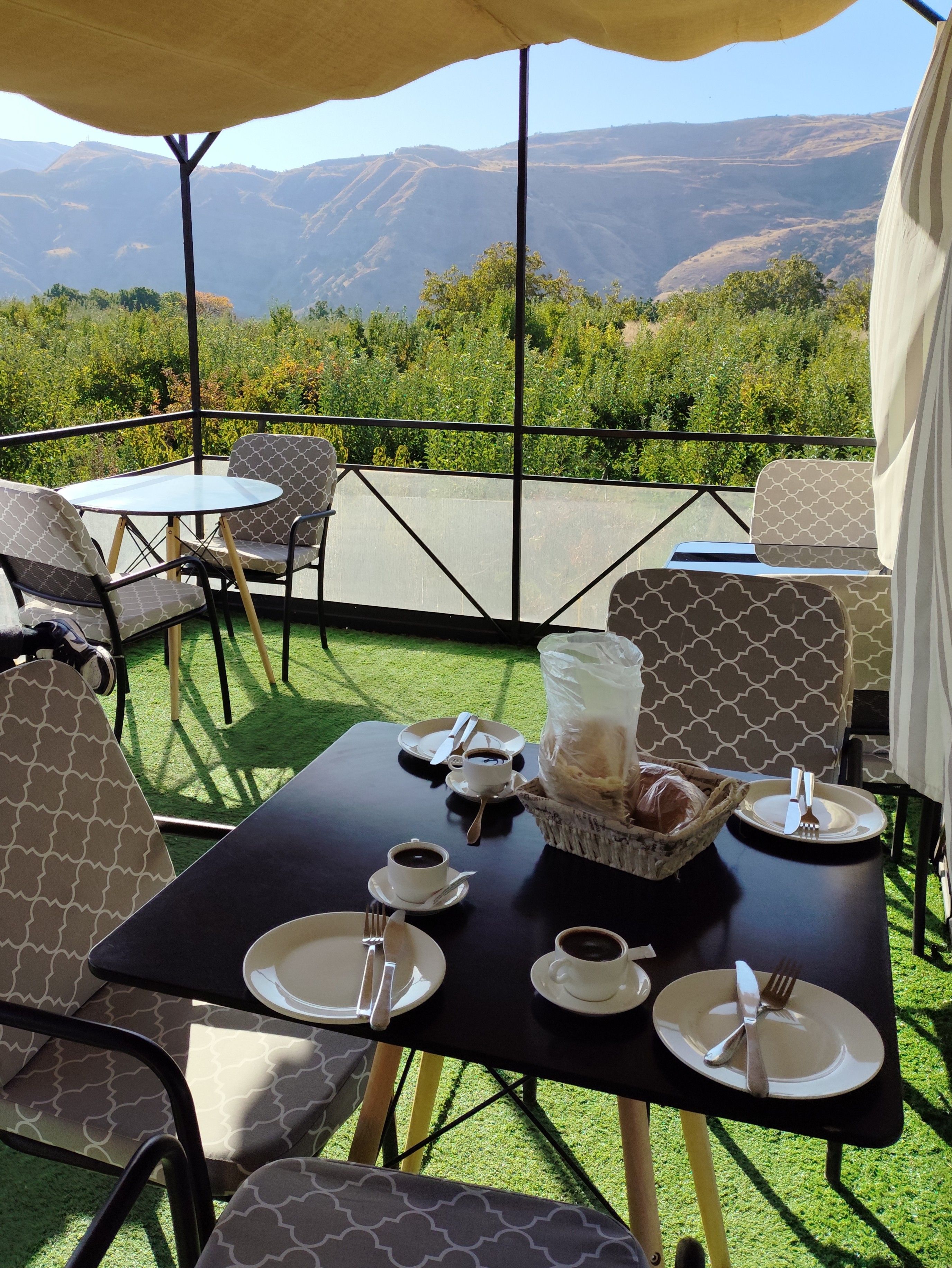 We stayed for a night at Garni, in a "hidden garden". Breakfast (the next day) was simple, but having it in the midst of nature elevated the experience.
